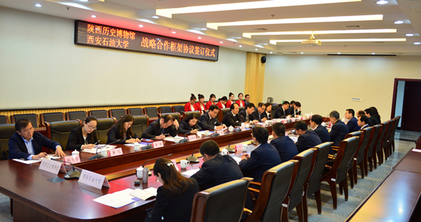陕西历史博物馆陕西省壁画基地、科研管理处、信息资料部、安全保卫处、后勤保障处、纪检监察室、党政办公室、宣传教育部、旅游票务部、壁画保护部负责人和我校党政办公室、宣传(统战)部、科技处、合作发展处、国际交流与合作处、图书馆、信息中心、新校区管委会综合办公室、人文学院、校团委负责人参加了合作协议签约仪式并参观了校园。