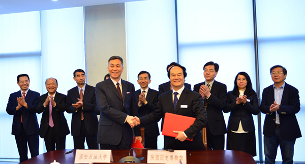 屈展校长代表学校对强跃书记一行来访表示热烈的欢迎,他简要介绍了学校近年来发展情况以及科学研究特色与成果等。屈校长说,我校是西北惟一一所石油石化为特色的学校,通过馆校双方发挥各自优势,尤其是“石油博物馆”的筹建,将进一步提升学校的文化氛围和推动人文社会学科的发展,学校将与陕西历史博物馆一起在馆藏分类、讲解员素质教育、文化基地建设等方面加强合作,推动双方合作更好更快的开展。