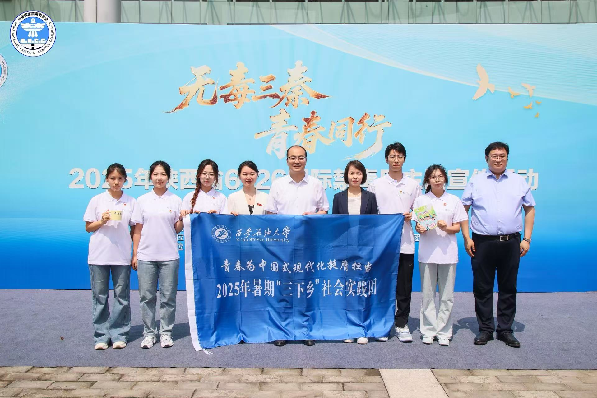 6月26日上午,2025年陕西省“无毒三秦 青春同行”禁毒宣传主题活动在陕西师范大学长安校区举办,由我校电子工程学院学生组成的“坚定禁毒不松懈”实践团队作为法治禁毒专项实践活动一类资助团队代表参加本次活动。