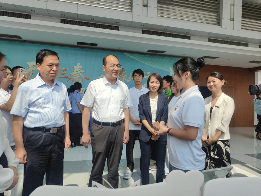 团省委书记徐永胜与我校师生亲切交流,在听取了我校社会实践团队队员代表刘慧敏关于实践团队近年来深入校园、社区和乡村开展禁毒知识普及和法治宣传的工作成效后,徐永胜对我校实践团队的专业素养和社会责任感给予高度评价,特别对队员们连续五年坚持开展禁毒志愿服务的执着精神表示赞赏。他勉励同学们继续发挥青年先锋作用,创新宣传形式,扩大覆盖范围,为构建无毒社会贡献青春力量。