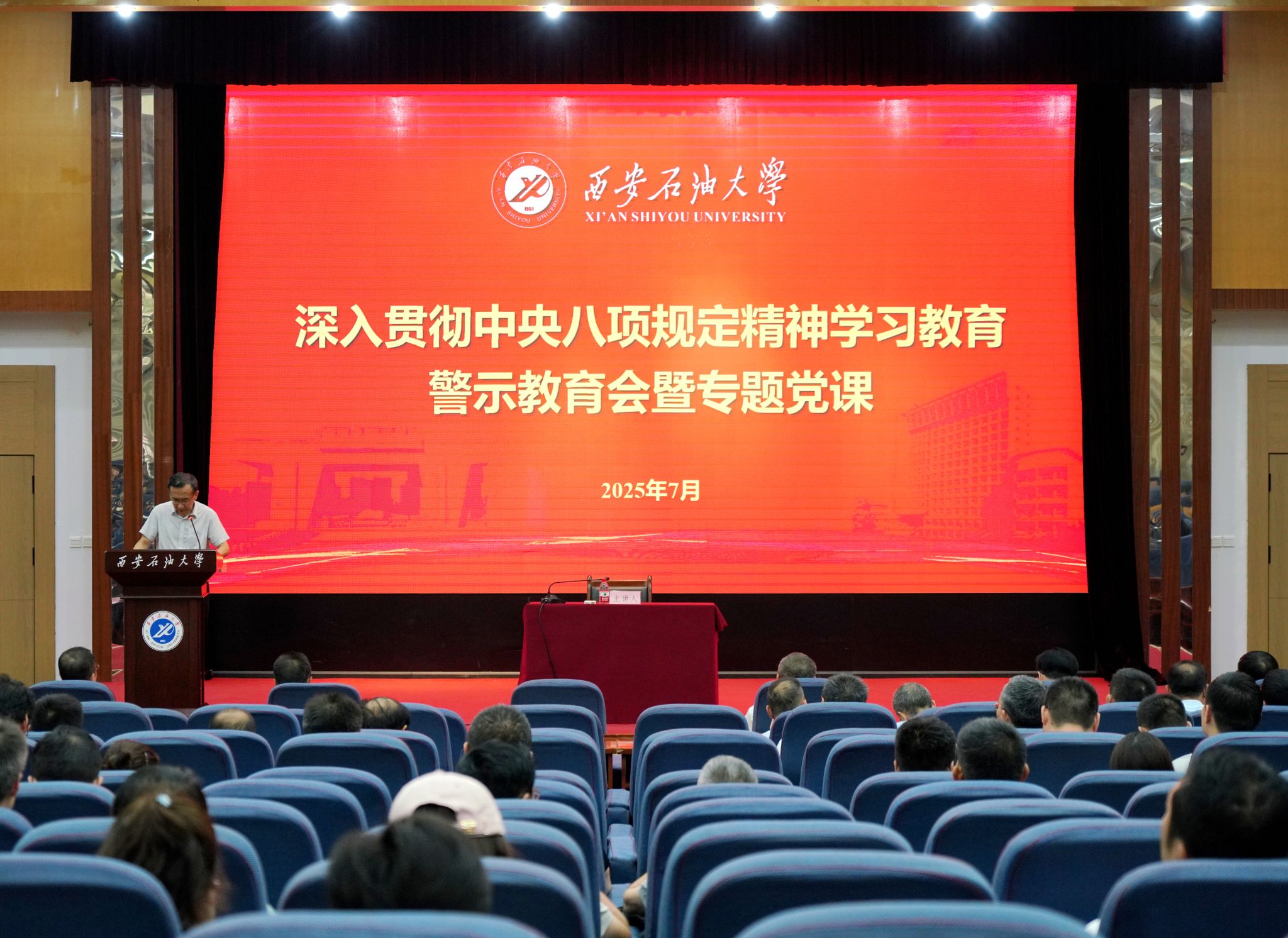7月9日,学校召开深入贯彻中央八项规定精神学习教育警示教育大会暨专题党课,学习习近平总书记关于加强党的作风建设的重要论述和中央、省委关于学习教育的最新安排部署,集中观看警示教育片《铁规矩硬杠杠》。校党委书记常江讲授专题党课,校党委副书记、纪委书记、监察专员王辉强通报违反中央八项规定及其实施细则精神典型案例,校党委副书记张木主持会议。