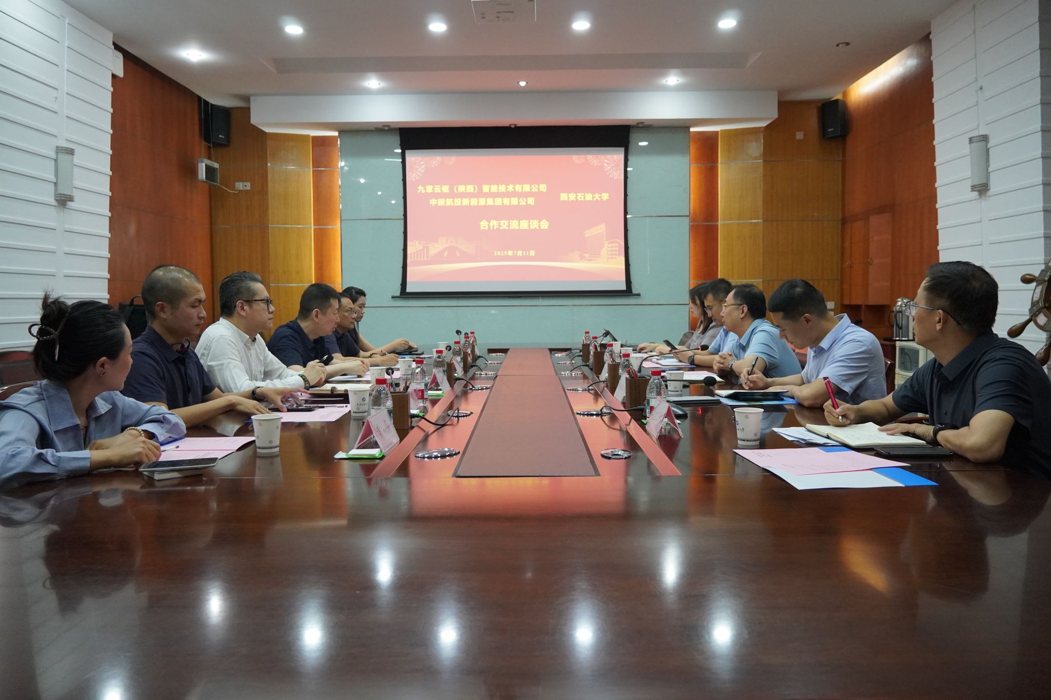 7月11日下午,我校与九章云枢(陕西)智能技术有限公司、中碳航投新能源集团有限公司开展合作交流座谈会。九章云枢(陕西)智能技术有限公司董事长陈高科,中碳航投新能源集团有限公司副总经理张戈,研究中心主任俞吕群,投资部副部长陈健,西北开发部袁丹、赵梦雨一行出席座谈会。座谈会由校党委委员、副校长种宇宏主持。