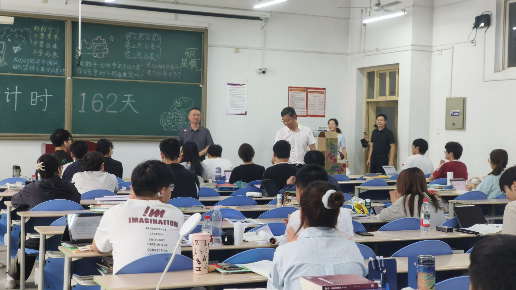 王进富一行首先来到博思楼考研自习室,为正在紧张备考的同学们带去亲切的问候和鼓励,并为大家准备了清凉解暑的饮品。他询问同学们的备考情况、目标院校和专业选择,并对同学们不畏酷暑、勤奋学习的精神给予表扬和肯定。他鼓励大家要坚定信心、明确目标,发挥西石大人不怕苦、不怕累的精神,积极科学备考,同时要在备考的过程中劳逸结合,用饱满的热情和积极的心态来面对未来考研道路上的挑战。