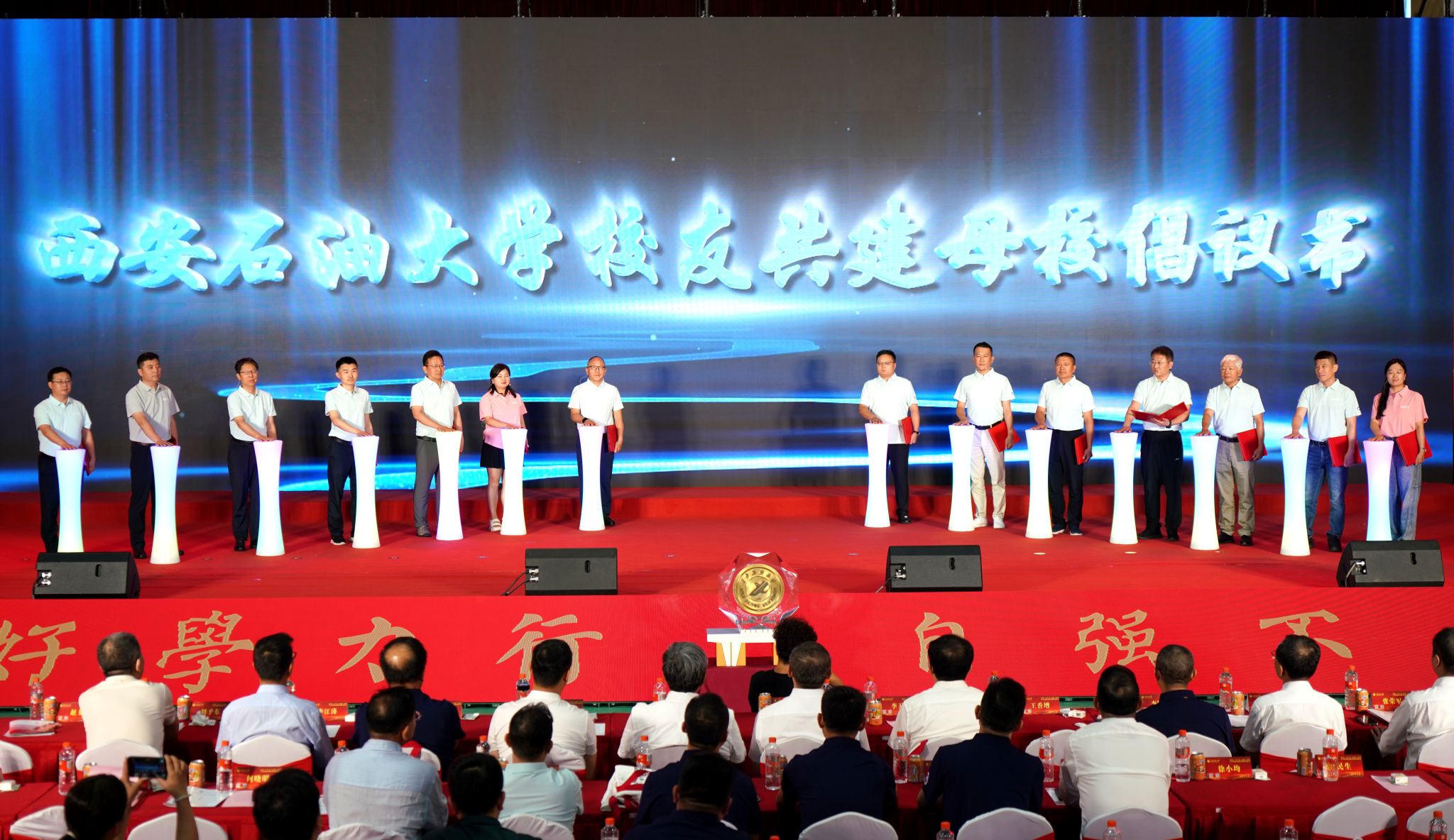 14名校友分会会长共同发起《西石大全球校友支持母校事业发展倡议书》,号召全球校友传承铁人精神、石油精神,积极为母校学科建设、人才培养建言献策,以产学研融合助力学校创新发展,构建母校与校友终身命运共同体。