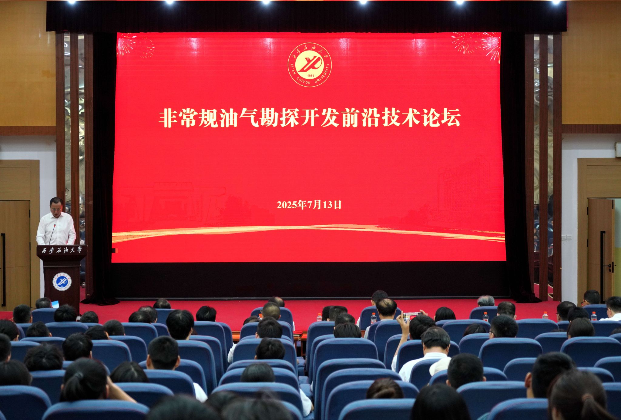 7月13日上午,学校在雁塔校区会议中心召开“非常规油气勘探开发前沿技术论坛”。陕西延长石油(集团)有限责任公司总地质师、首席科学家王香增,中国石油长庆油田分公司原副总工程师郑明科,油气钻采输送装备全国重点实验室主任霍春勇,中国石油长庆油田分公司首席专家喻健,中国石油青海油田分公司首席技术专家李江涛,中国石油集团测井有限公司科技管理部经理李传伟应邀出席并作主旨报告。我校校长王进富、党委副书记张木、副校长张骁勇出席论坛,各学院主要负责人及师生代表近300人参加论坛。论坛由副校长张荣军主持。