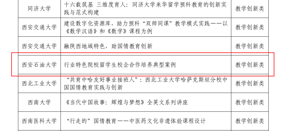 近年来,我校高度重视国际化人才培养工作,先后与中塔天然气管道公司、中吉天然气管道公司等联合开展人才培养项目,形成了较为成熟的校企联合培养模式与协同育人机制。此次入选典型案例,充分体现了我校在来华留学教育领域的创新成果和示范价值。未来,我校将以本次典型案例入选为契机,持续深化来华留学教学改革与研究,总结来华留学教育经验,进一步提升来华留学教育质量。