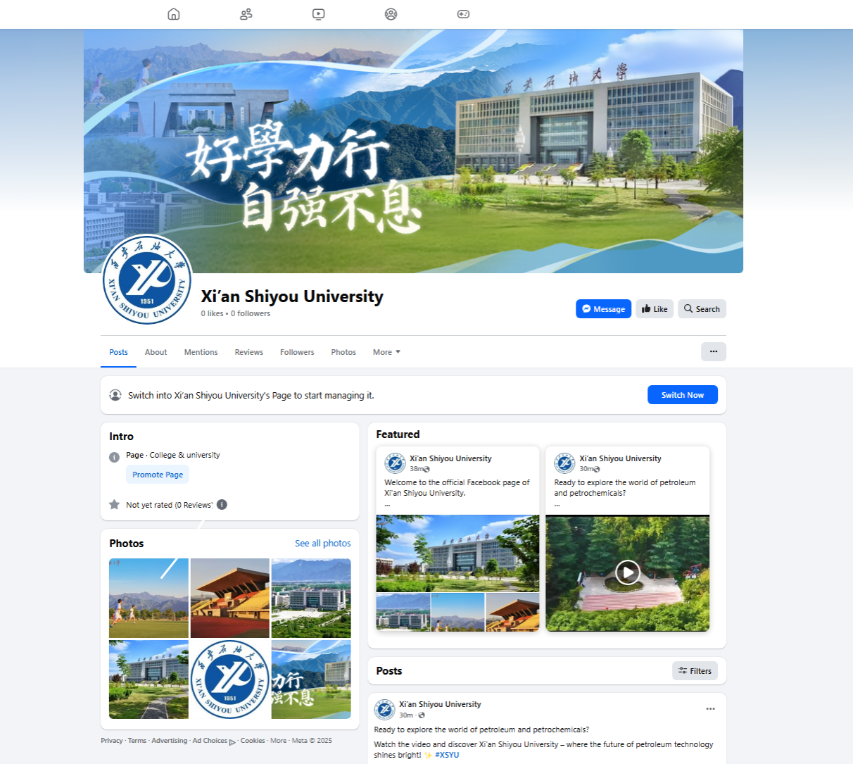 此次两大海外社交媒体账号的开通,是在现有官微、微博、抖音、哔哩哔哩及视频号等国内新媒体账号稳健运营基础上,补齐海外传播媒介的关键一环,标志着我校全媒体传播格局的全面构建完成。学校将以这两大海外社交媒体平台为重要依托,立足陕西、面向全球,积极探索具有“中国话语、石油特色”的海外传播路径,生动讲好西石大故事,有力传递中国好声音,持续扩大学校的海外知名度与影响力,稳步提升国际化办学水平。