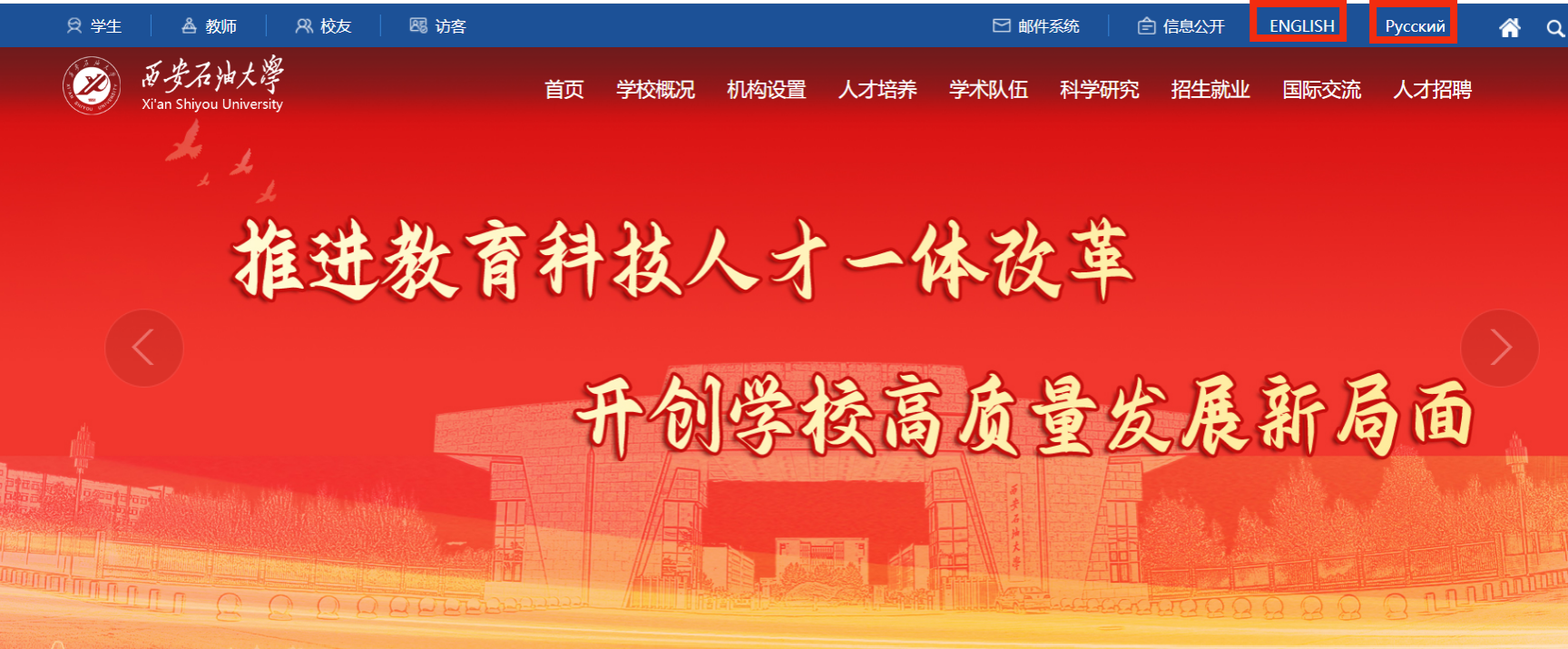 俄文主页聚焦学校核心发展成果,开设学校概况(об университете)、新闻中心(Пресс-центр)、院系介绍(Институты и факультеты)、学术学位(Ученые степени)、国际合作(Международные сотрудничества)、校园生活(Студенческая жизнь)、科学研究(Научные исследования)等特色板块,系统呈现学校在人才培养、科学研究、社会服务等方面的综合实力,尤其突出国际化办学的鲜明特色与丰硕成果,为俄语世界打开一扇了解西石大的全新窗口。