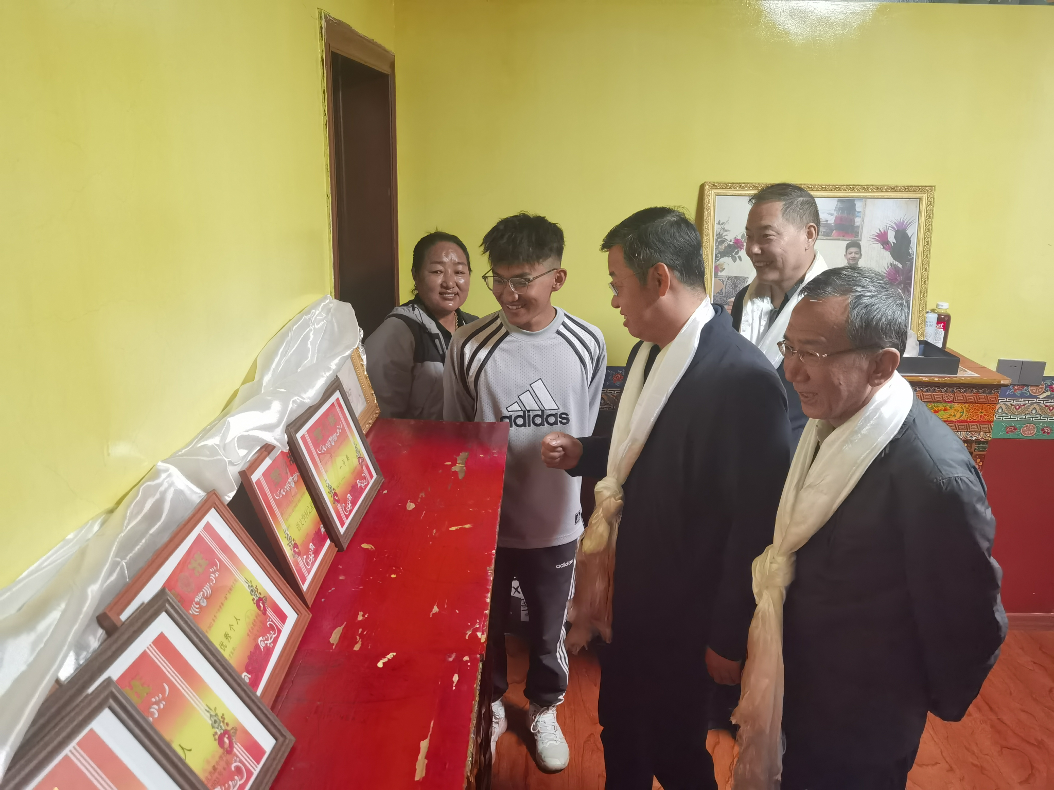 8月25日,王进富一行专程来到拉萨市城关区我校经济管理学院商管2409班扎西次仁学生家中进行家访并促膝长谈。王进富对学生及家人表达了亲切的慰问,深入了解了家庭生活状况、工作情况和学生的未来职业规划,倾听学生在学习和生活中遇到的困难与需求,并向家长介绍了学生的学业情况以及学校的奖助学金体系和就业帮扶措施,鼓励扎西次仁坚定理想信念、努力学习知识,练就过硬本领,回报家庭、建设家乡、服务社会,做民族团结进步的践行者。扎西次仁家长谈到,党中央高度重视民族地区教育发展,持续加大惠民政策扶持力度,不仅让我们民族地区家庭的生活越过越有盼头,更给了孩子们通过知识改变命运、实现人生价值的机会。同时,也对学校专程跨越千里上门家访、用心用情关怀培养学生表示衷心感谢,并表示会积极配合学校,家校协同,共同助力学生成长成才,回报社会。