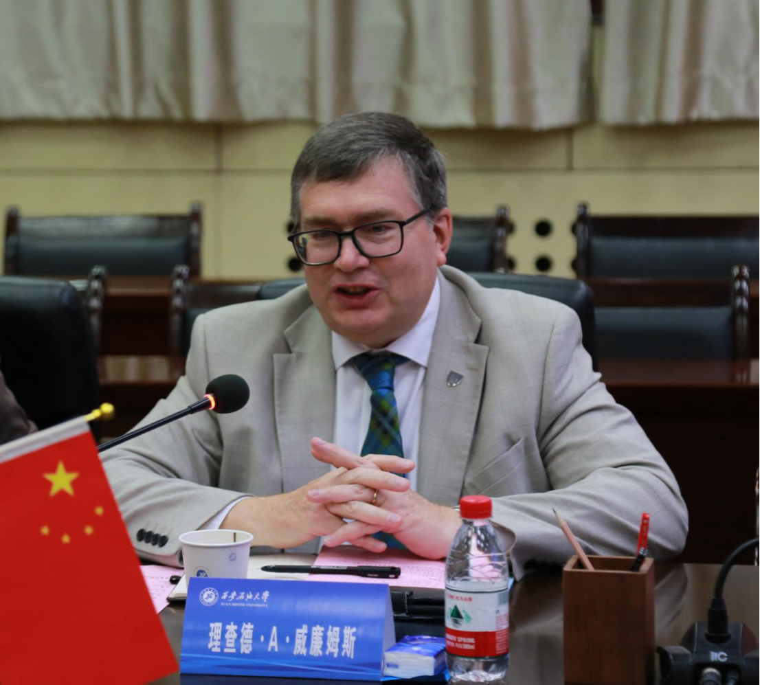 王进富对理查德・A・威廉姆斯校长一行的到访表示热烈欢迎,他首先回顾了两校前期友好沟通历程,并简要介绍了学校的办学历史、学科特色和国际化发展现状。他表示,赫瑞-瓦特大学在能源、数学与计算机、工程建设领域声誉卓越,在国际化教育、产学研融合方面积累了丰富经验,与学校学科布局和发展愿景高度契合。他指出,期望未来双方开展多层次、宽领域的务实合作,共同应对全球能源转型与科技革命带来的挑战与机遇:一是加速3+1本硕人才联合培养项目落地,成立专项工作组,细化合作专业学分互认机制,完善生源优选模式及资金政策保障机制,力争实现2026年秋季首批项目学生赴外学习;二是加强国际科研合作,组建联合科研团队,联合申请国际科研项目,探索共享实验设施与资源路径,共筑国际能源创新平台;三是增进双方文化交流,扩大两校间教师科研互访、学生研学交流规模,深化彼此文化理解与合作互信。