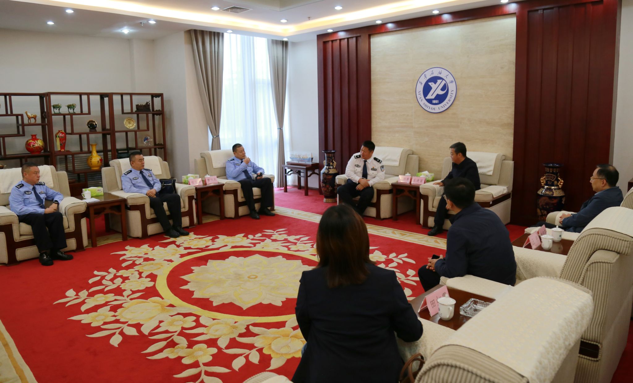 活动开始前,校长王进富在贵宾室会见了来校出席活动的鄠邑区副区长、公安分局局长、督察长吴洲勇一行,就学校在鄠邑区建设发展中的痛点、难点进行了深入交流,对关于进一步开展警校共治工作,切实提升学校教学科研优越环境交换了意见。